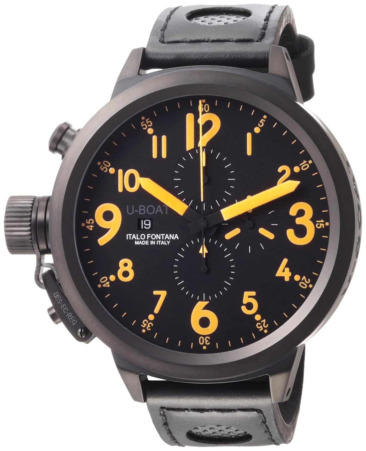 - Exclusive crown protection device, back of see through case displays U-Boat stamped oscillating weight and movement customized for U-Boat.